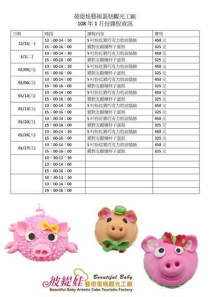 1月1日-2月24日蛋糕DIY體驗課程時間