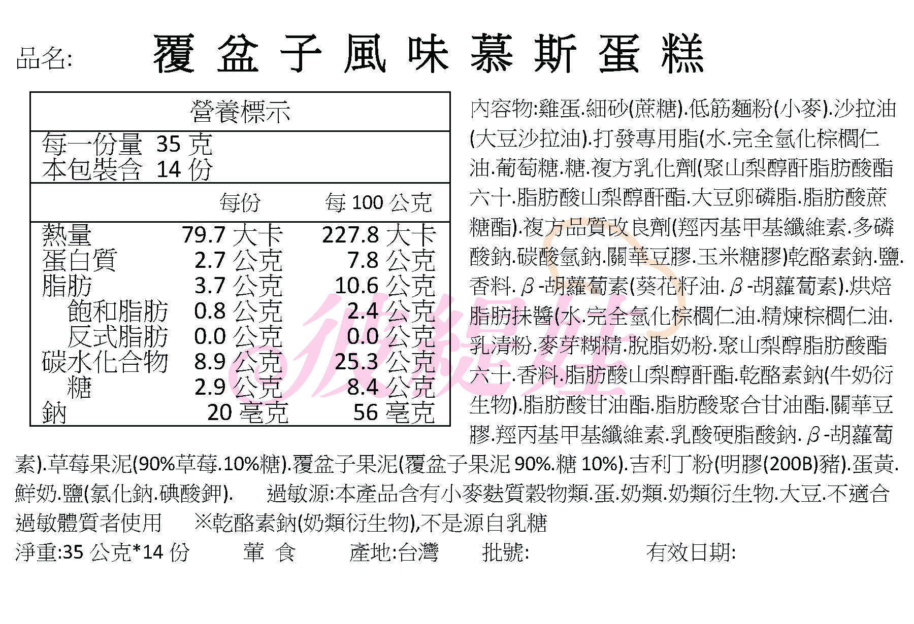 雞蛋.麵粉.砂糖.沙拉油 鮮奶.精鹽.覆盆子果泥.吉利丁