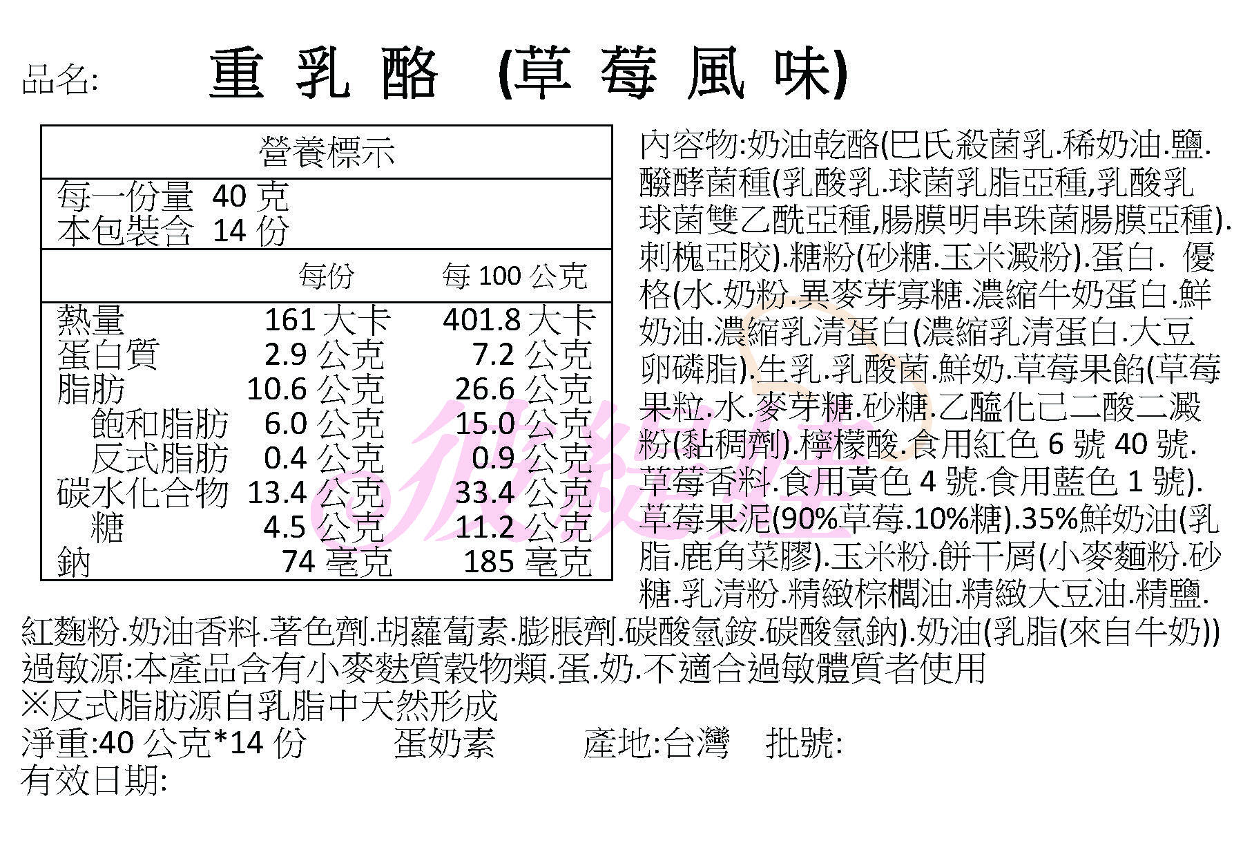 奶油乾酪.糖粉.蛋白.優格.鮮奶油.奶油.草莓果泥.玉米粉.餅乾