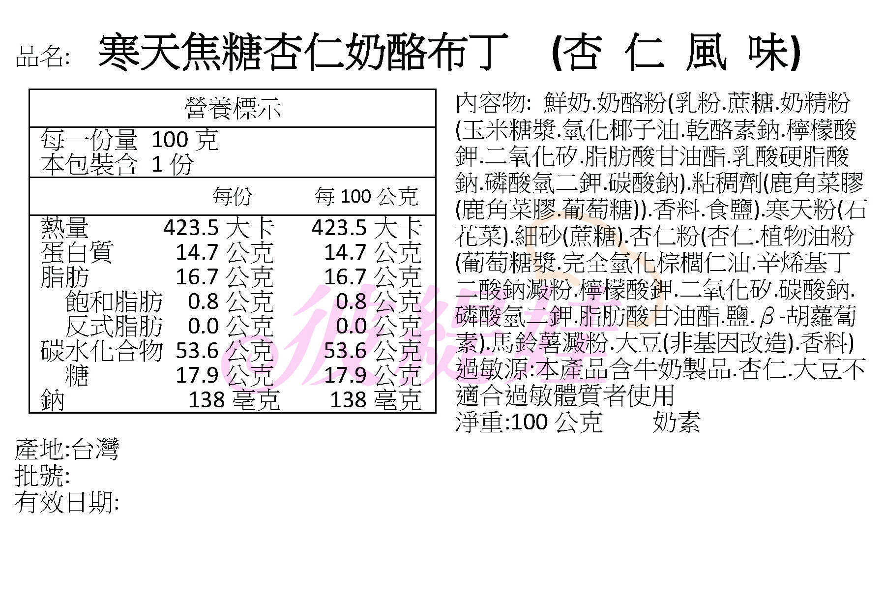 本產品含有雞蛋.牛奶