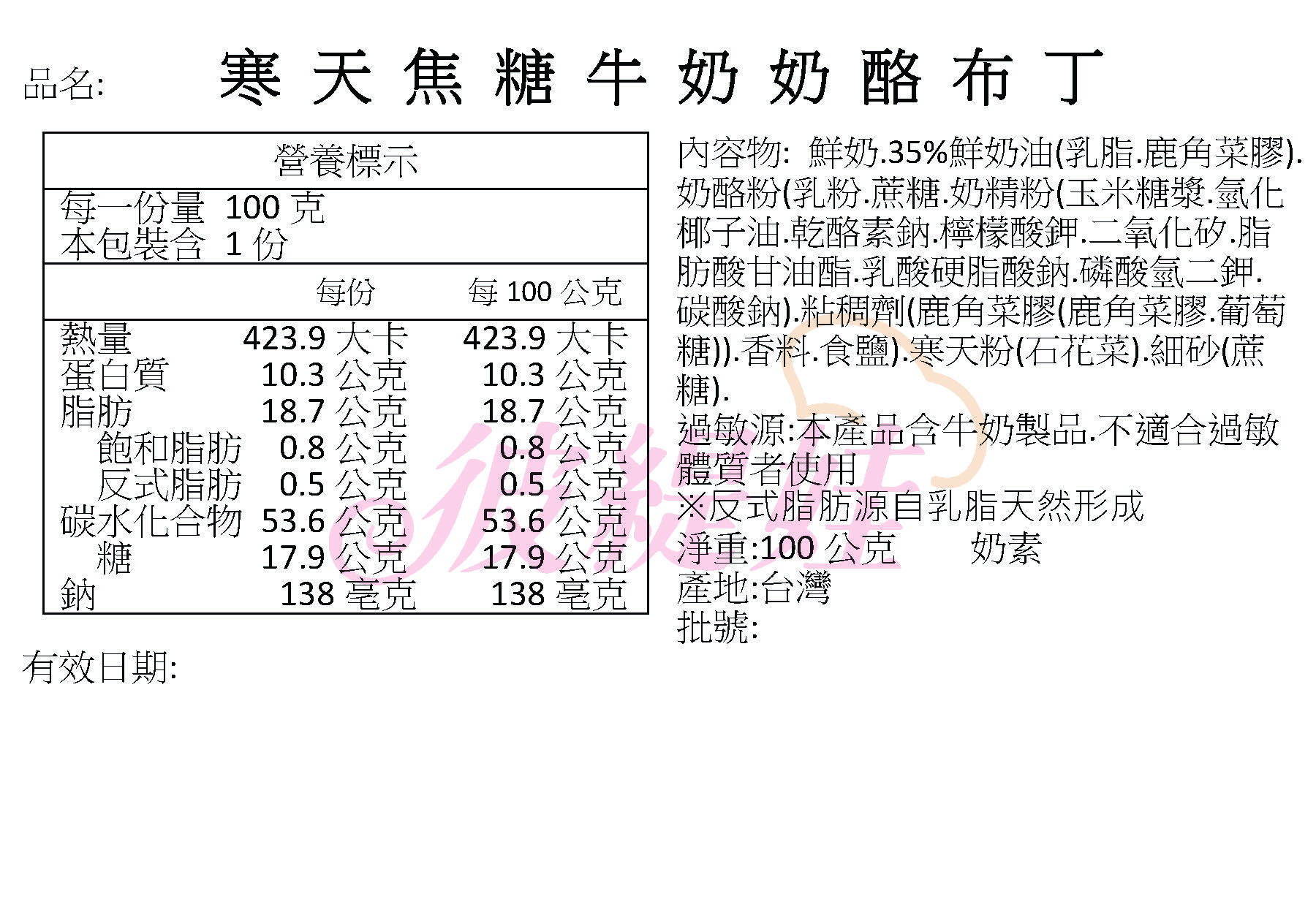 本產品含有雞蛋.牛奶