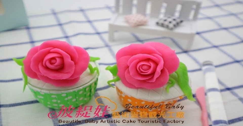 課程內容:DIY課程─杏仁膏 翻糖捏塑玫瑰花杯子蛋糕(2個)