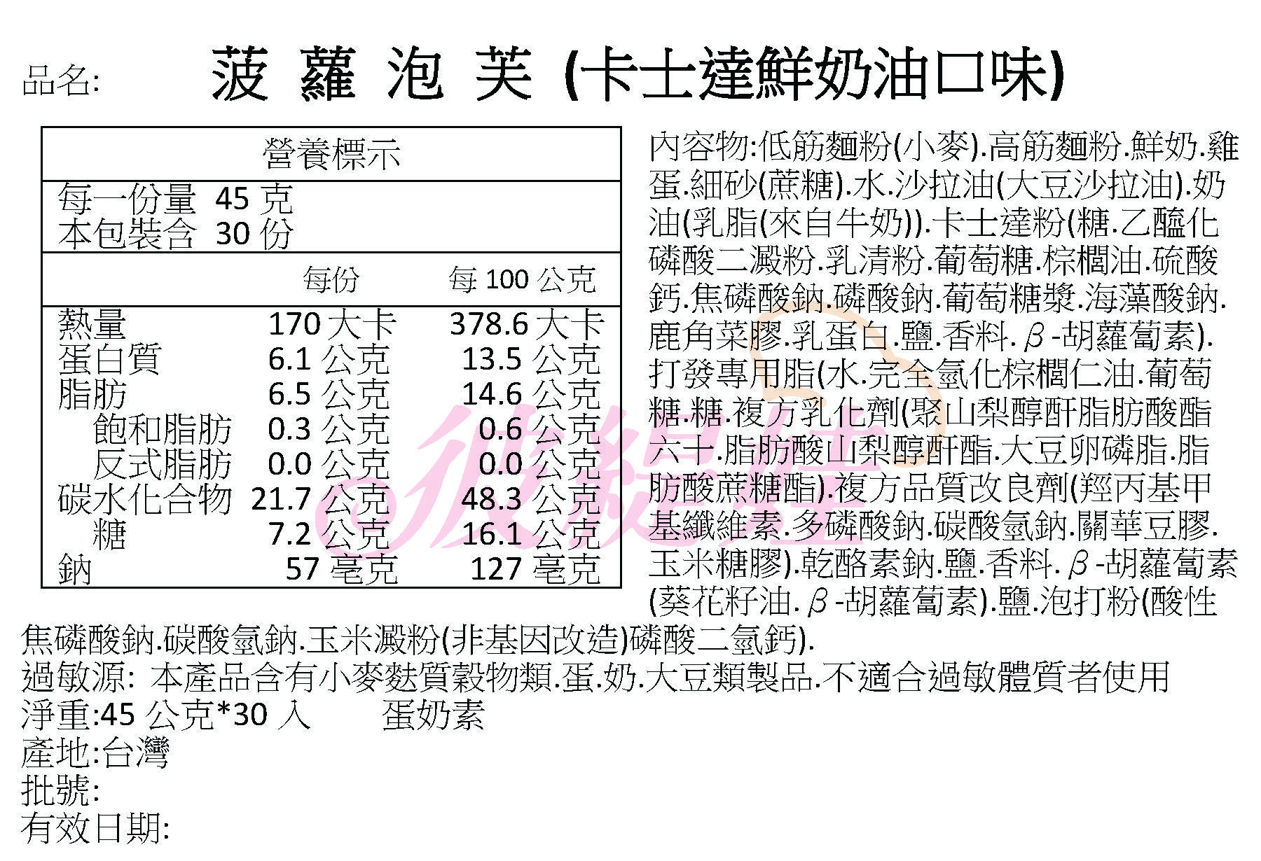 本產品含有雞蛋.牛奶