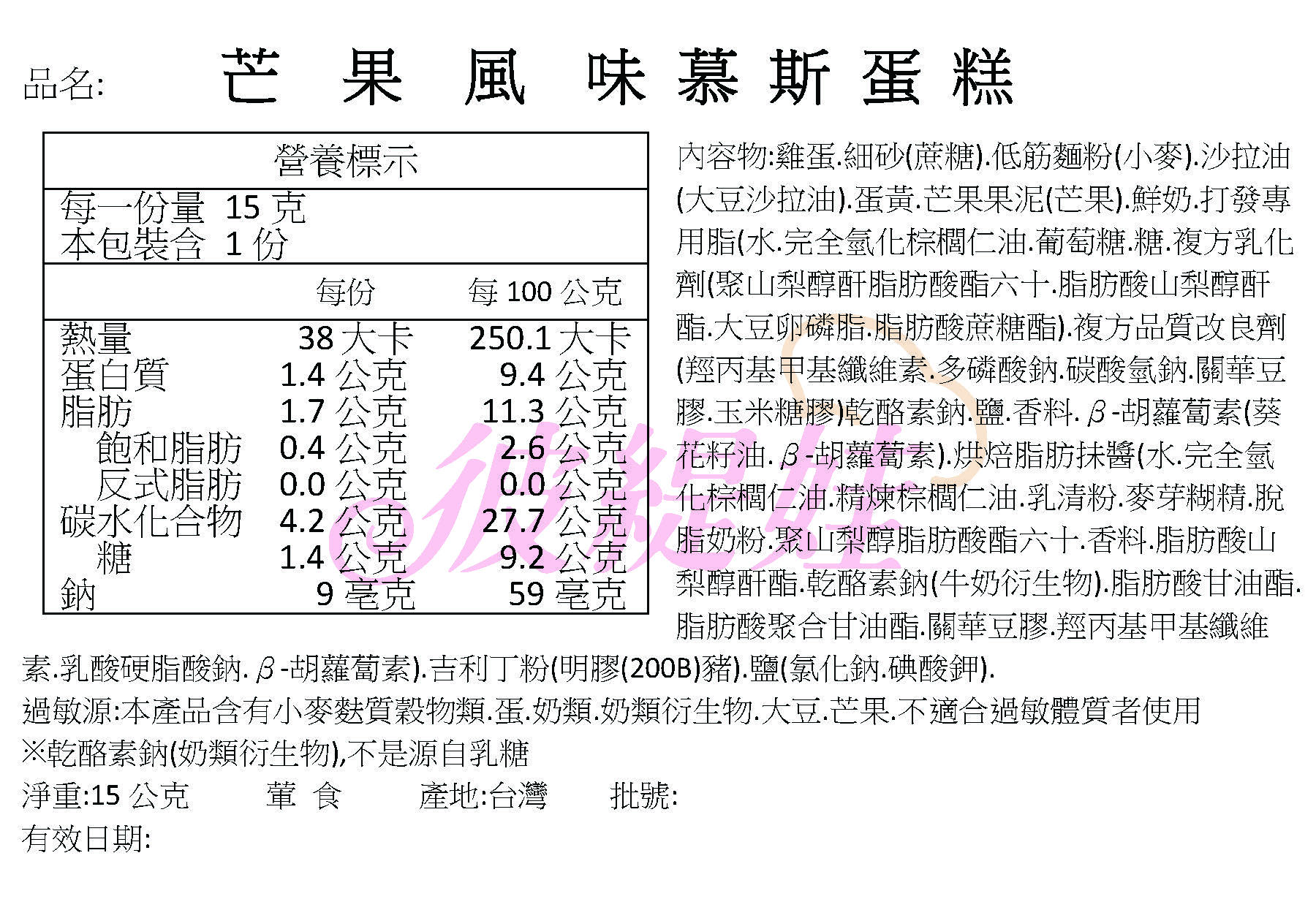 本產品含有雞蛋.牛奶