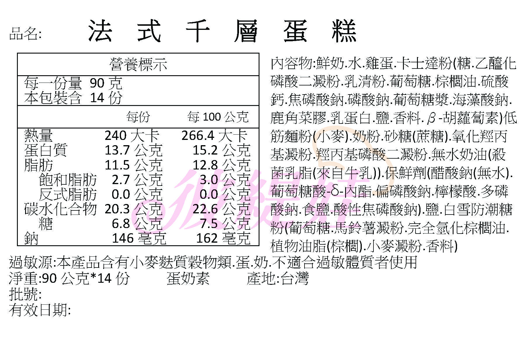 蛋糕尺吋為參考值,因產品冷凍後會收縮10%屬正常現像,機器切割會因產品軟硬度而有些微誤差,請以實際收到尺吋為準.